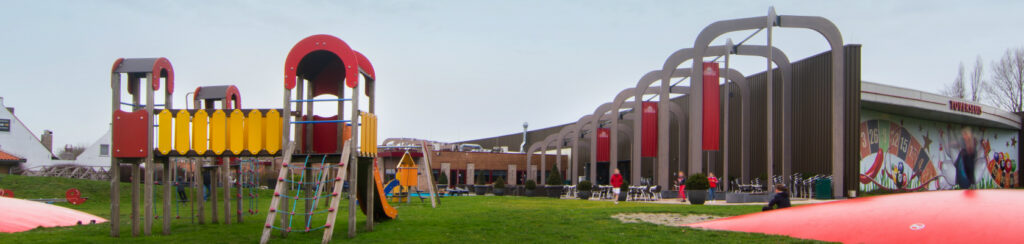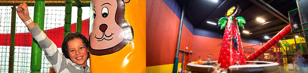 Binnen wachten springkussens, trampolines, glijbanen en een grote klimtoren. Buiten scheuren de kinderen over de fietsbaan, duiken ze het grote luchtkussen op of spetteren ze in het peuterbad van 50 centimeter diep.